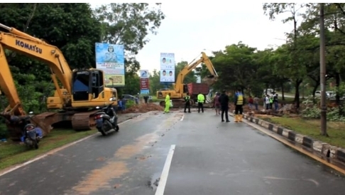 MAGAZINE INDONESIA || themagnesianews.com – KEPRI, Batam – AKIBAT amblasnya tanah di salah satu ruas Jalan Sudirman dari arah Kepri Mall menuju ke Polresta Barelang, memaksa akses ruas jalan tersebut diputus untuk sementara waktu.