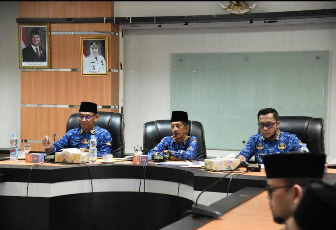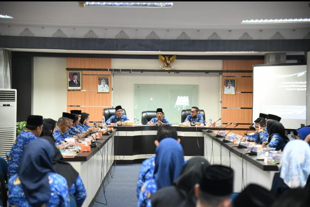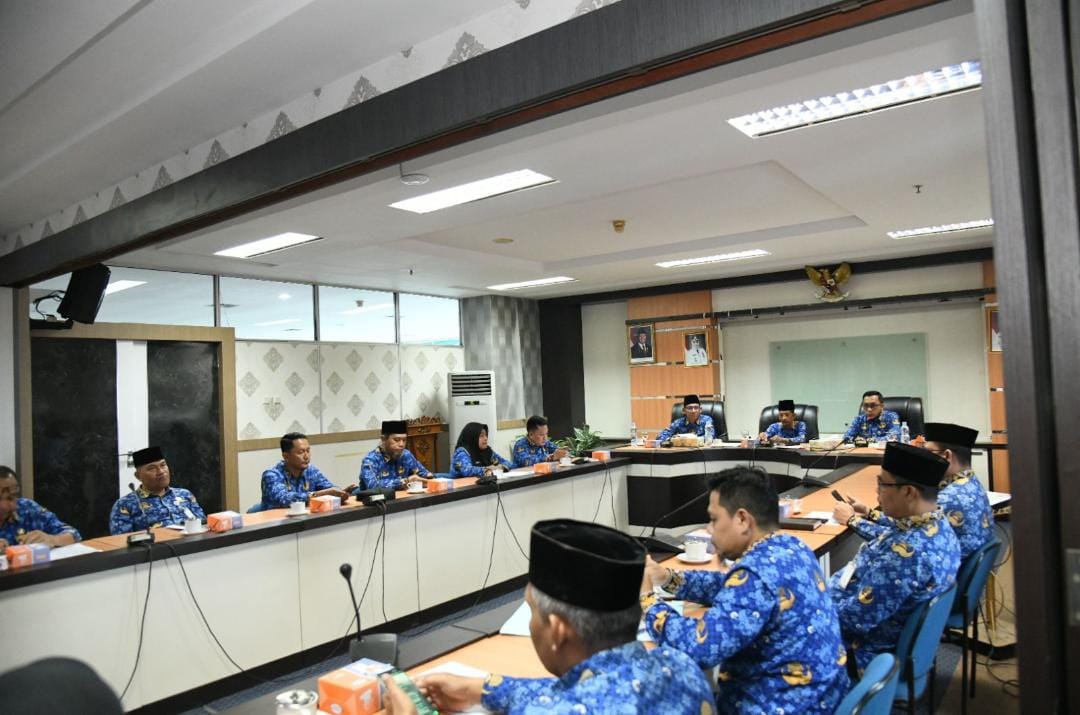 Rapat yang dipimpin Staf Ahli Bupati Bidang Kemasyarakatan dan SDM, Johansyah Syafri, mewakili Bupati Kasmarni, digelar di lantai II Kantor Bupati Bengkalis, Rabu (17/9). Hadir pimpinan OPD hingga camat se-Kabupaten Bengkalis.