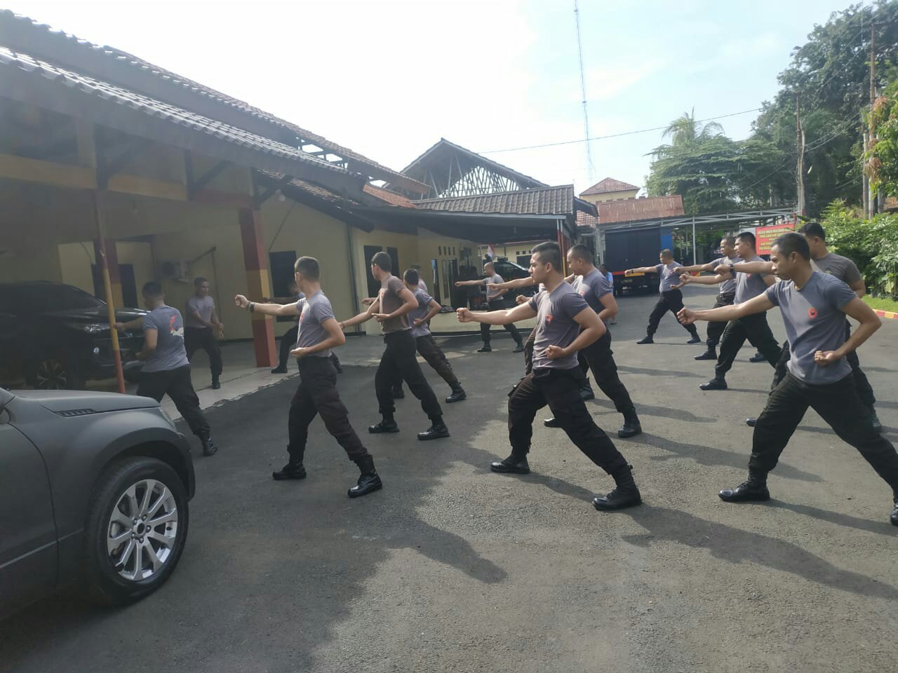 KOTA SERANG – themagnesianews.com || Bertempat di halaman Mako Batalyon A Pelopor Brimob Banten, 20 personel Batalyon A Sat Brimob Polda Banten gelar latihan kemampuan beladiri Polri dan Senam borgol yang dipimpin oleh Iptu Sisworo dan didampingi oleh Iptu Asep Mulyadi, Selasa (12/05/2020) pukul 08.30 wib.