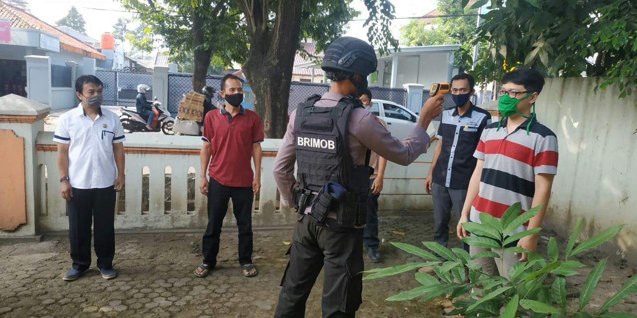 Dalam patroli yang dipimpin oleh Bripka Tjetjep Yon B Por Brimob Banten ini juga melakukan pemeriksaan suhu tubuh kepada para masyarakat yang ada di wilayah tersebut. (AdhyS)