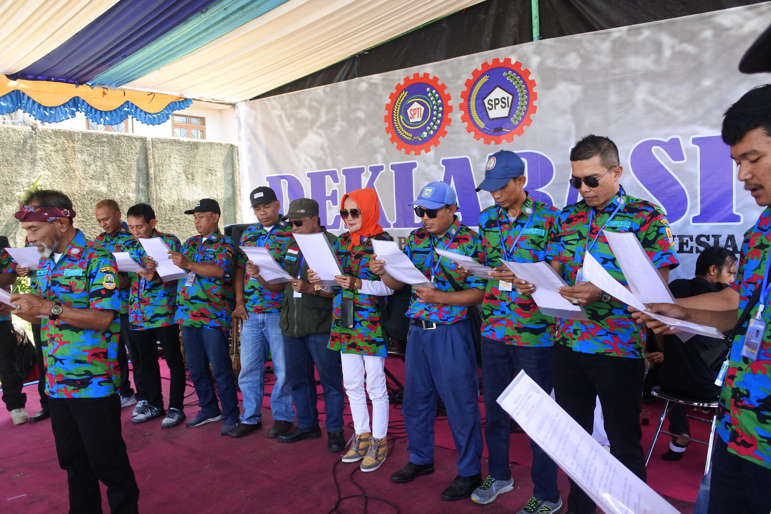 Tepat Jam 11.00 wib ketua SPTI membacakan naskah deklarasi yang di ikuti oleh seluruh perwakilan pengurus serikat transfortasi Se- Jawa Barat.