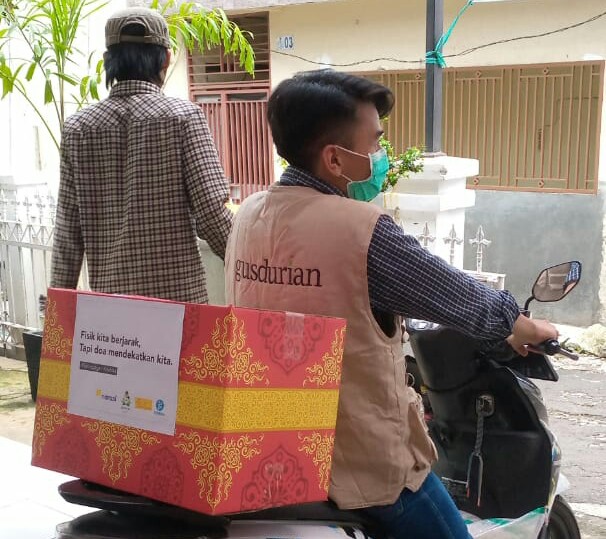 Paket Sembako yang di distribusikan oleh Posko Gusdurian Bandung menyalurkan berasal dari donasi yang dilakukan oleh Narasi TV, Gerakan Islam Cinta, Gerakan #SalingJaga yang dilakukan oleh GUSDURian Peduli bersama para pemengaruh (influencer) melalui platform kitabisa.com