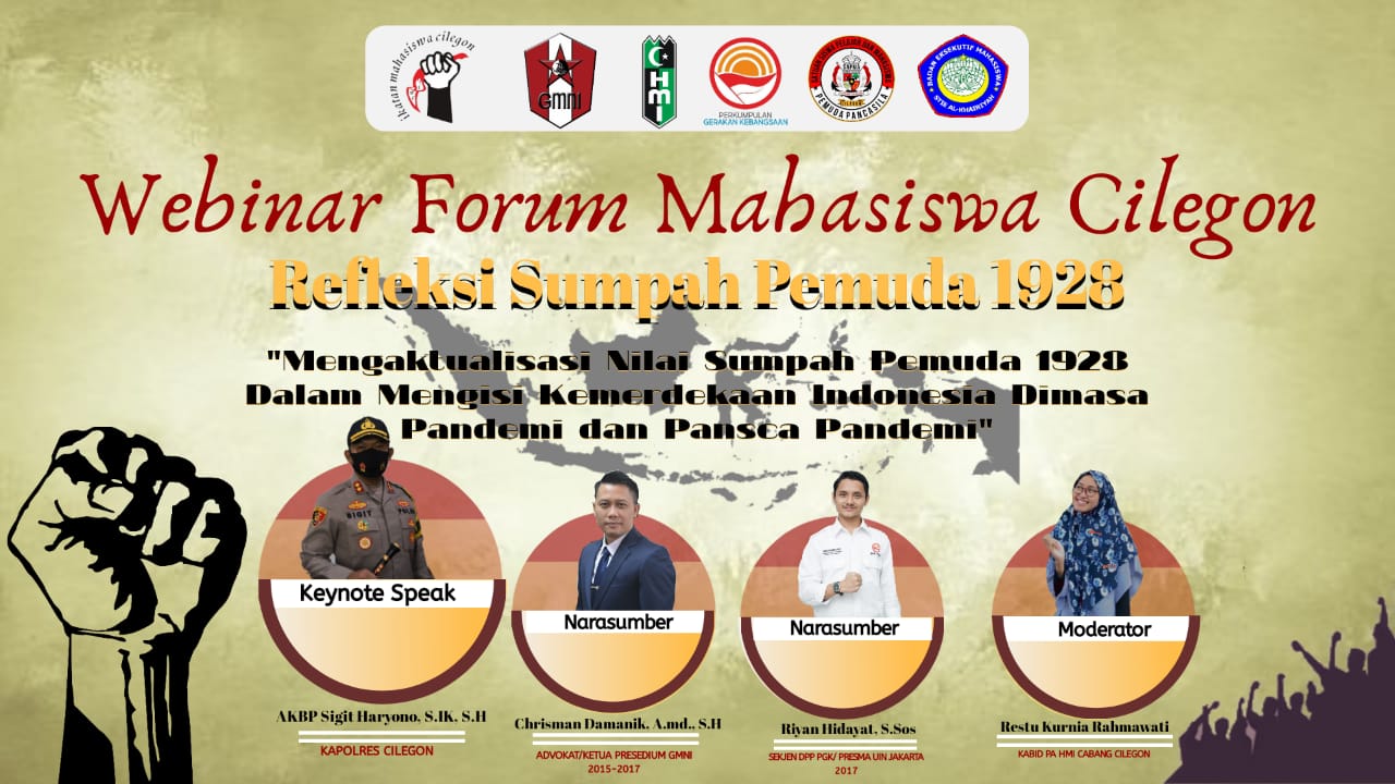 Hal ini disampaikan Kapolres saat menjadi keynote speaker acara webinar Peringatan Hari Sumpah Pemuda yang di gelar oleh Forum Mahasiswa Cilegon pada Kamis, 29/10/2020.