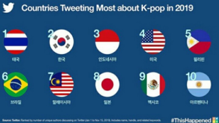 Indonesia sendiri Tempati Posisi Ketiga Dalam Daftar Top 10 Negara yang Paling Banyak Ngetweet Tentang K-Pop pada Tahun 2019.