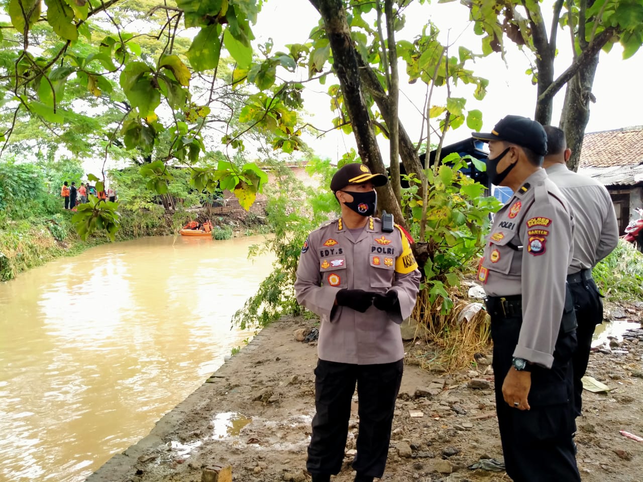 Banjir Bandang Cilegon. Kabid Humas Polda Banten Tinjau Lokasi Hanyutnya Warga Disungai Cigiceh