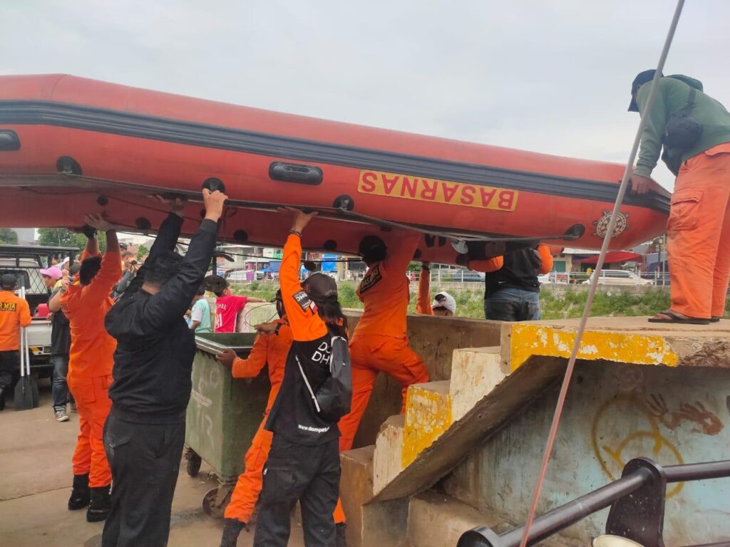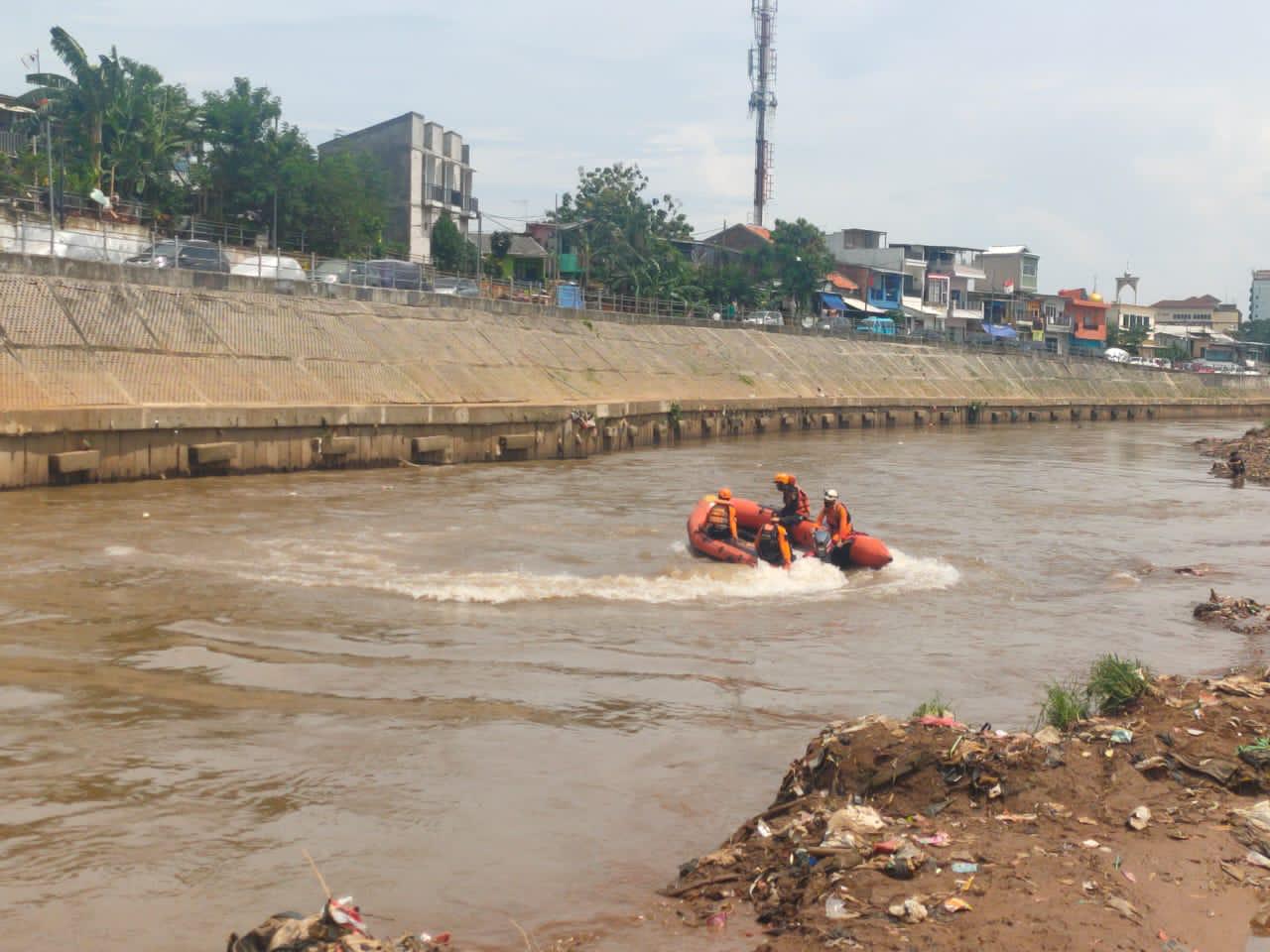 • SRU pertama akan melakukan pencarian dengan menggunakan perahu karet menyusuri aliran Kali Ciliwung kurang lebih sejauh 3 KM dari lokasi kejadian,