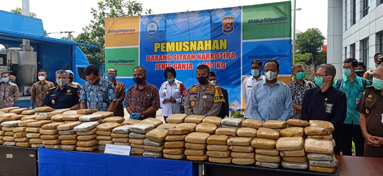 Pemusnahan BB ganja 301 kg di pimpin langsung oleh KA BNN RI Drs. Heru Winarko, S.H didampingi Kepala BNN Banten Brigjen Pol Hendri Marpaung, Kapolda Banten Irjen Pol Drs. Fiandar beserta Forkopimda Provinsi Banten.