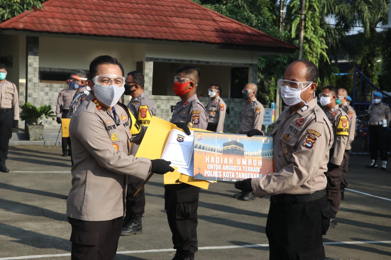 Sebanyak 29 personel Polresta Tangerang Polda Banten menerima penghargaan. Mereka dinilai memiliki kinerja baik, diantaranya ada 1 anggota terbaik akan diberangkatkan umroh.