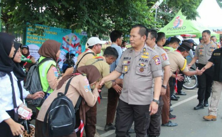” Kami mengecek bahwa pengamanan ini dilaksanakan secara gabungan, Polri, TNI,Dinas perhubungan, Dinas kesehatan, pramuka “. Terangnya.