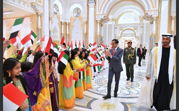 MAGAZINE INDONESIA | ABU DHABI – themagnesianews.com – Seperti kunjungan resmi Seorang Kepala Negara lainnya, kunjungan Presiden Republik Indonesia Jokowi ke Persatuan Emirat Arab (PEA) inipun disambut dengan upacara kenegaraan di Istana Kepresidenan Qasr Al Watan, Abu Dhabi, pada Minggu, (12/1/2020).