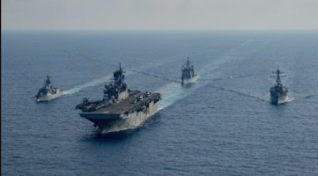 Disisi lain U.S. Navy mengatakan The 7th Fleet Expeditionary Strike Group (Militer group tempur) yang berada di laut China selatan merupakan dukungan terhadap keamanan dan stabilitas di kawasan Indo-Pasifik. Sedangkan Australia HMAS Parramatta (FFG 154) mulai berlayar dengan Ticonderoga-class guided missile-cruiser USS Bunker Hill (CG 52) kemudian bertemu dengan Amphibious assault ship USS America (LHA 6) dan Arleigh-Burke Class Guided Missile destroyer USS Barry (DDG 52) tanggal 18 April lalu. Operasi gabungan ini telah mencakup latihan penembakan langsung yang berintegrasi, operasi helikopter terkoordinasi, latihan perlindungan dengan kekuatan perahu kecil, integrasi komando dan kontrol dan manuver interoperabilitas.