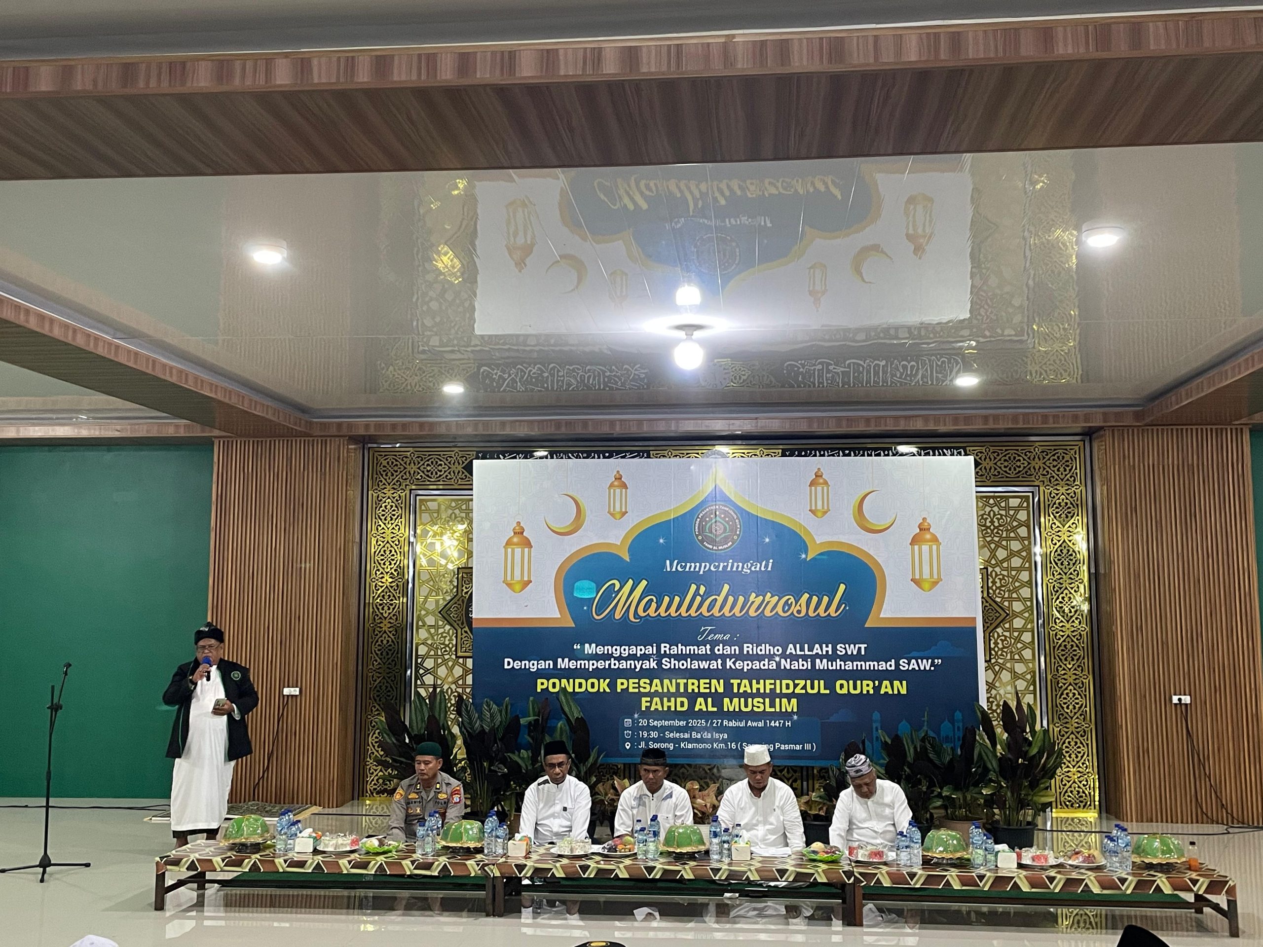 Peringatan Maulid Nabi dengan tema “Menggapai Rahmat dan Ridho Allah SWT Dengan Memperbanyak Sholawat Kepada Nabi Muhammad SAW” berlangsung khidmat. Acara dihadiri tokoh agama, para santri, serta masyarakat sekitar. Rangkaian kegiatan diawali pembacaan ayat suci Al-Qur’an, dilanjutkan sholawat Nabi, ceramah agama, dan tausiah yang mengingatkan keteladanan Rasulullah SAW dalam kehidupan sehari-hari.