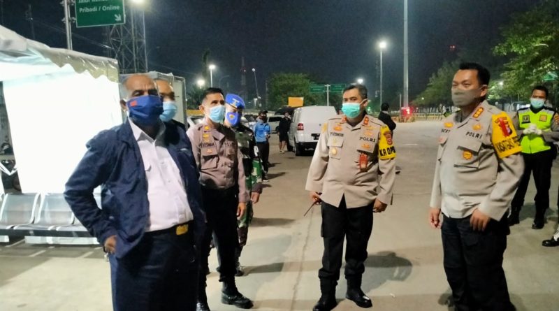 MERAK – themagnesianews.com || Pastikan situasi aman, Dirbinmas Polda Banten tinjau Pos Check Point pintu masuk pelabuhan merak. Kamis, (07/05/2020). Pukul 00.30 Wib dini hari.