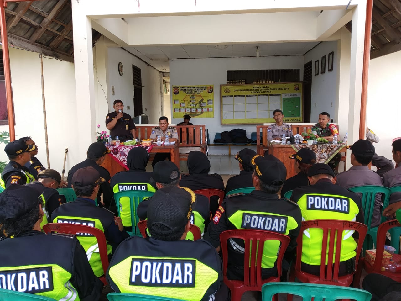 “Terkait menjaga Kamtibmas diwilayah, Kepolisian dan TNI tidak bisa sendri, melainkan keamanan itu adalah tugas bersama. Dalam hal keamanan, Polri dan TNI tidak bisa sendiri, melainkan tanggung jawab kita bersama, dalam waktu dekat ini ada agenda tahunan oleh karena itu yakni Pam natal dan tahun baru, mari rekan – rekan Pokdar, Rapi dan ormas lainnya, kita jaga kamtibmas di lingkungan kita “, Kasat Bhinmas Polres Kota Tangerang Kompol Teguh Wahyudi, SH.