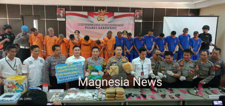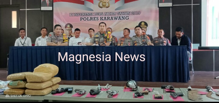 themagnesianews.com | Karawang,- Polres Kabupaten Karawang menggelar konferensi pers terkait laporan perkembangan situasi keamanan dan ketertiban masyarakat (Kamtibmas) sepanjang tahun 2019, Di Aula Reskrim Senin (30/12/2019).