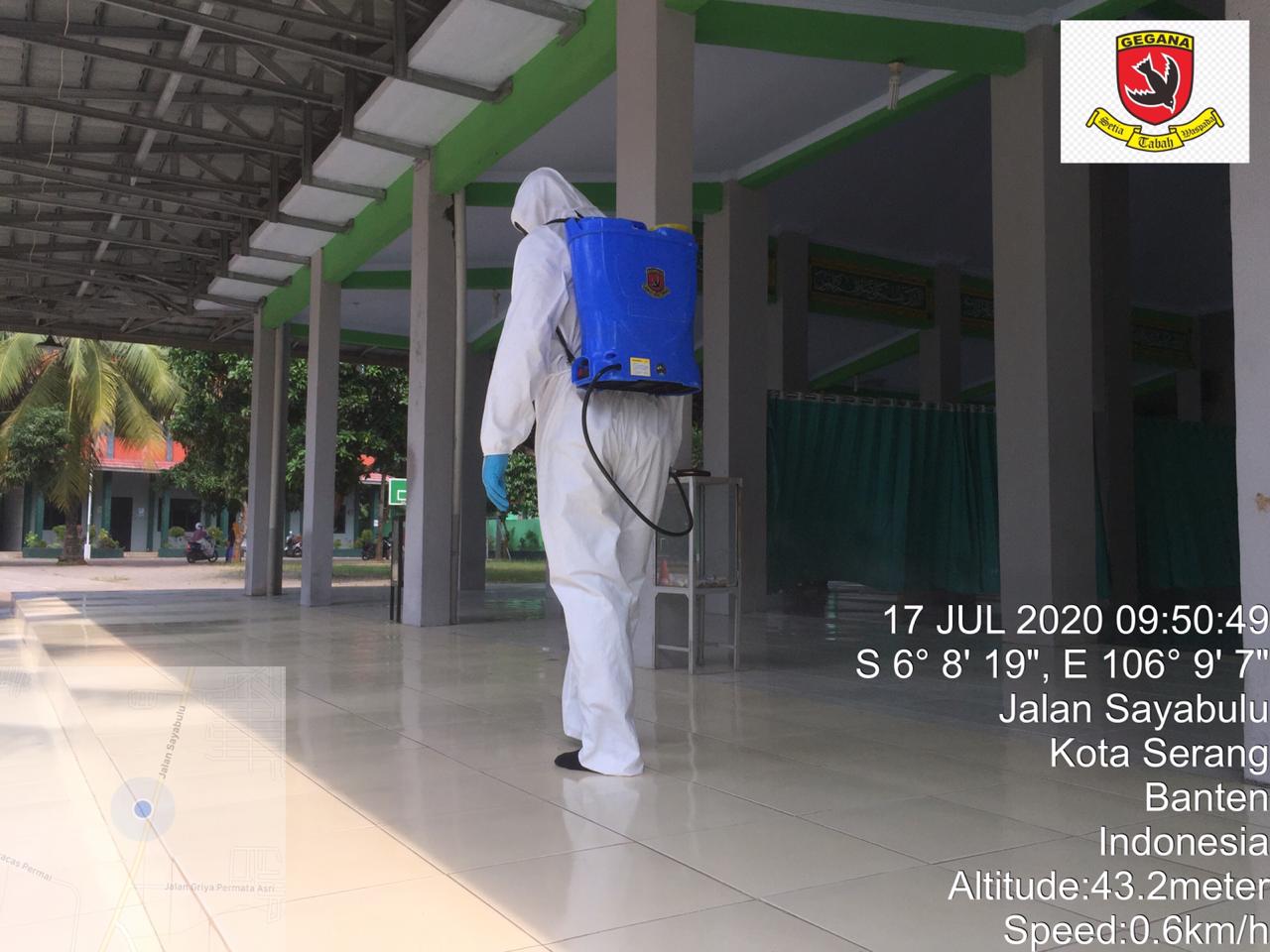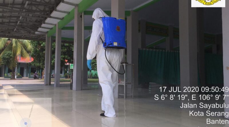 MAGAZINE INDONESIA || themagnesianews.com – Kota Serang – Guna melawan wabah Covid-19, Sat Brimob Polda Banten lakukan penyemprotan disinfektan di Ponpes Nurul Bantany di Jl. Sayabulu Dalung Kelurahan Dalung Kecamatan Cipocok Jaya Kota Serang, Jum’at (17/07/2020).