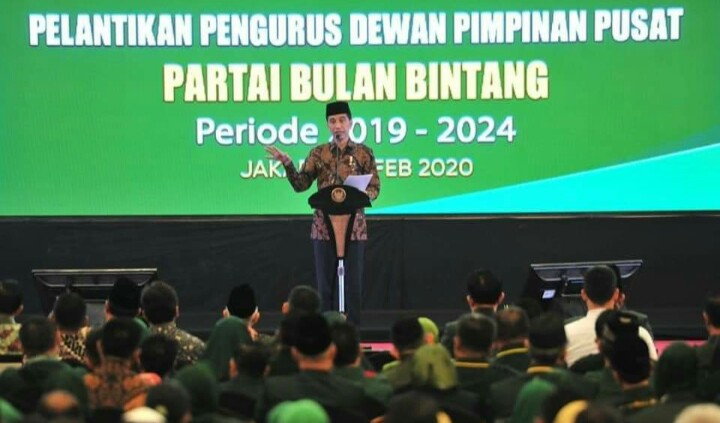 Di akhir sambutan, Presiden menyampaikan selamat kepada DPP Partai Bulan Bintang masa bakti 2019-2024. Turut hadir Ketua DPD La Nyala Mataliti, Mensesneg Pratikno dan Mendagri Tito Karnavian.