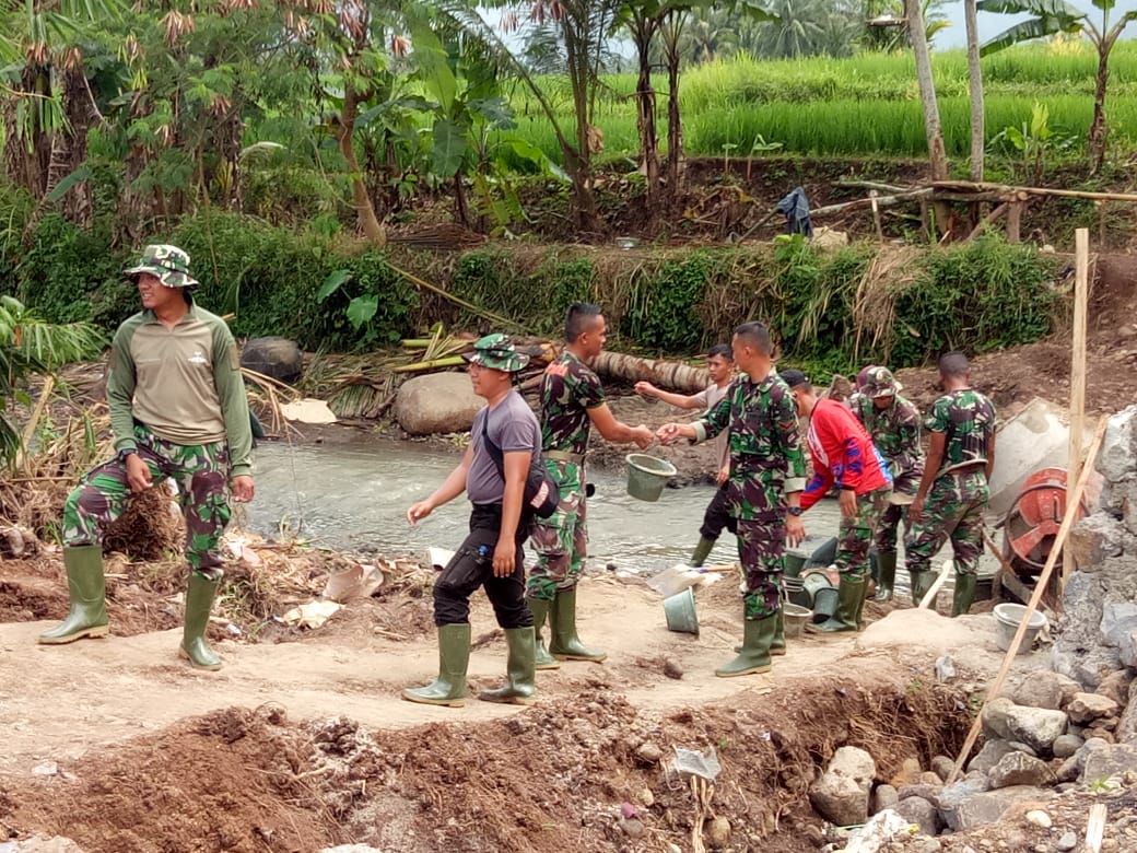 Kegiatan TMMD yang berlokasi di Desa Barugbug, Kecamatan Padarincang, Kabupaten Serang, juga melibatkan beberapa personel dari Yonif 320/Badak Putih dan Satbrimob Polda Banten.