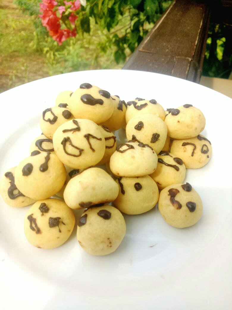 2). Bentuk adonan kecil-kecil dan bulat.