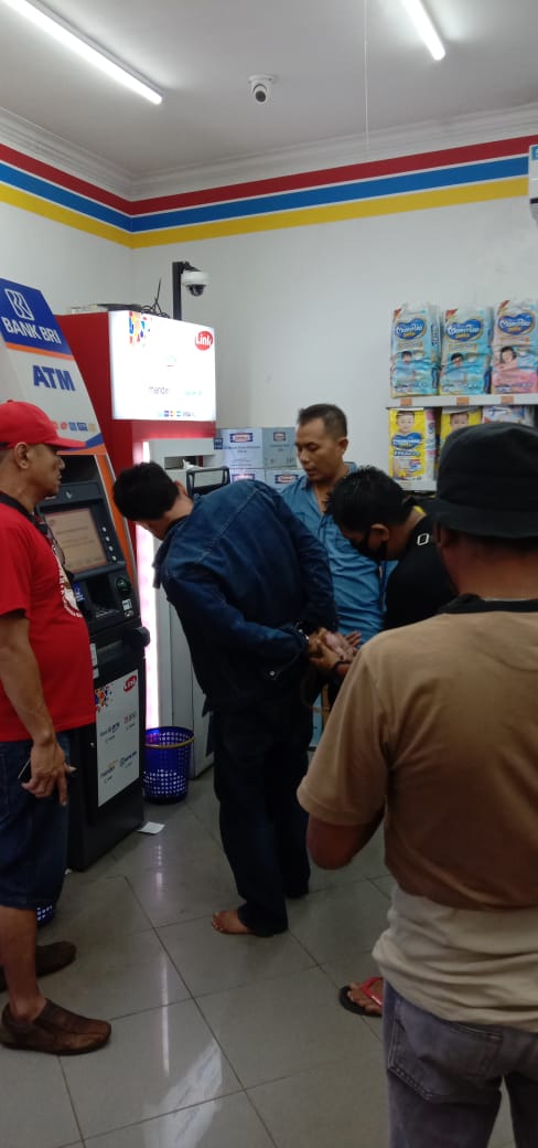 Petugas mendapatkan informasi dari salah satu penjaga minimarket bahwa ada seorang ibu ( korban ) yang meminta tolong kepada pelayan toko bahwa ada masalah di mesin ATM tersebut, mendengar informasi tersebut Team Resmob langsung masuk ke dalam sebuah Toko waralaba tersebut dan melihat seorang laki-laki yang tidak di kenal dengan gerak-gerik yang mencurigakan.