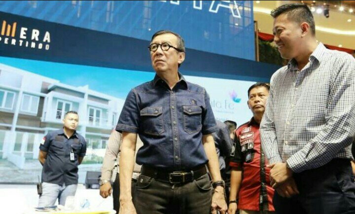 Menkum HAM Yasonna Laoly bersama rekan bisnis anaknya Chairman Samera Propertindo, Adi Ming E di Samera Expo 2020 di Atrium Sun Plaza Medan, Minggu (15/3/2020)
